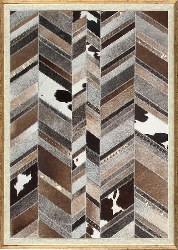 Product Craftsmanship: MDF backboard, cowhide artwork center, cowhide stitched patchwork pattern
