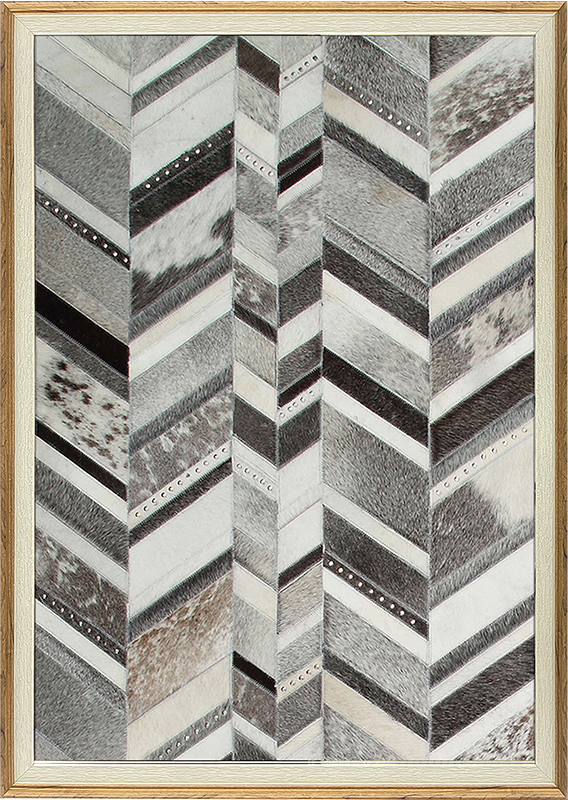 Product Craftsmanship: MDF backboard, cowhide artwork center, cowhide stitched patchwork pattern