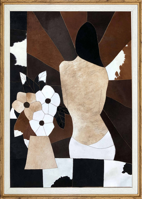 Product Craftsmanship: MDF backboard, cowhide artwork center, cowhide stitched patchwork pattern