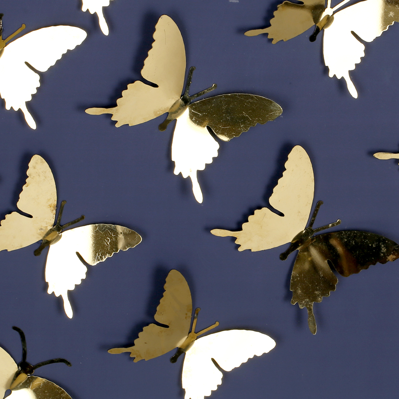 Product Craftsmanship:MDF backboard, butterfly pattern in the center made from stainless steel plate with laser-cut design, Front acrylic glass panel