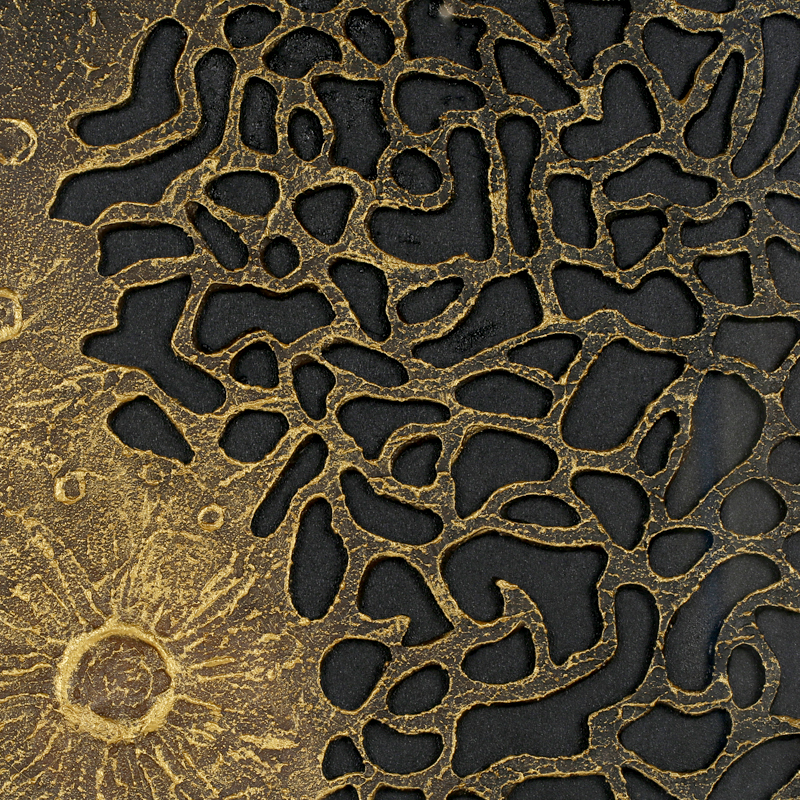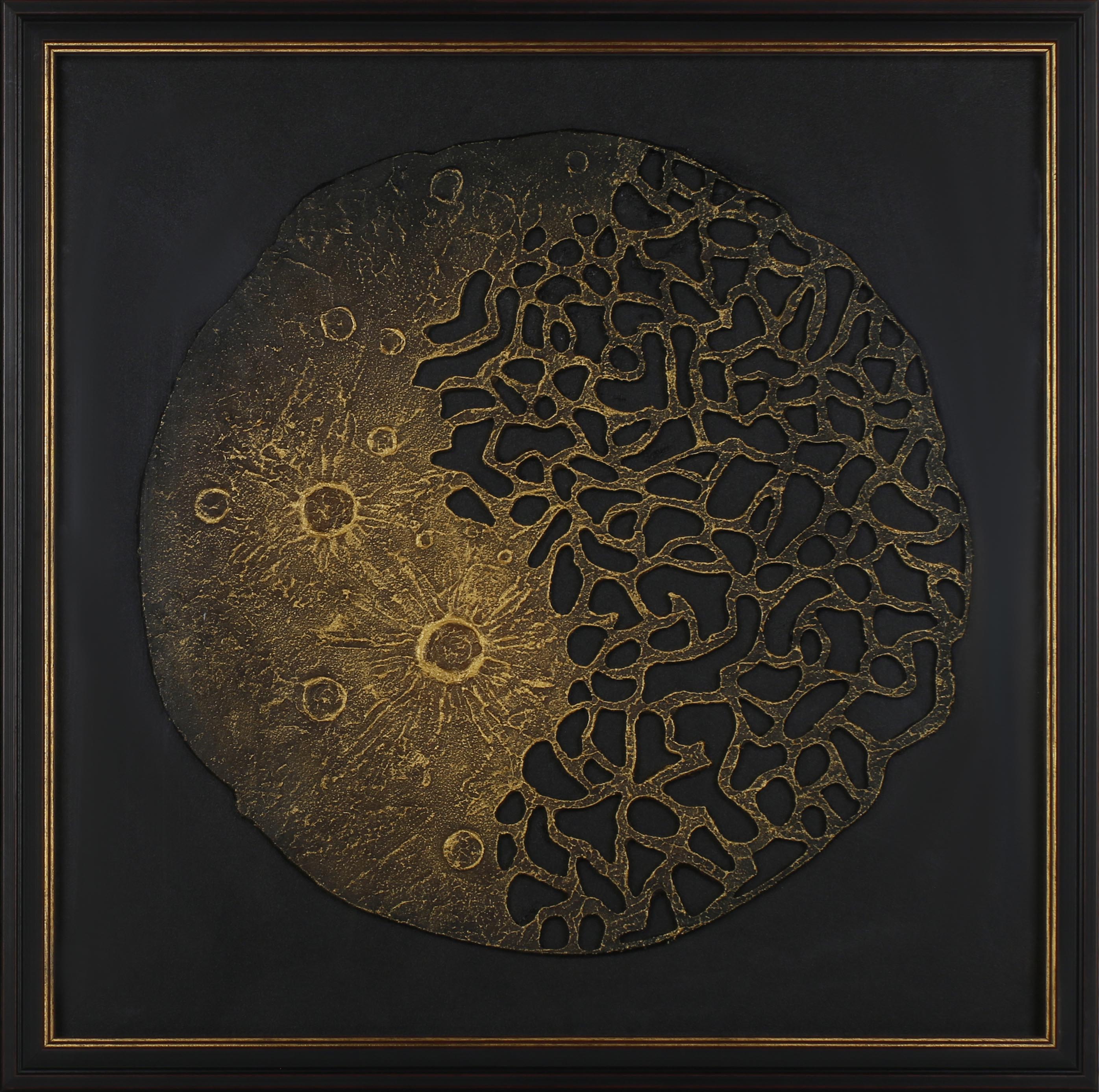 Product Craftsmanship: MDF backboard, laser-cut pattern on the artwork, overall embossed design, surface finished with gold antique effect, Front acrylic glass panel