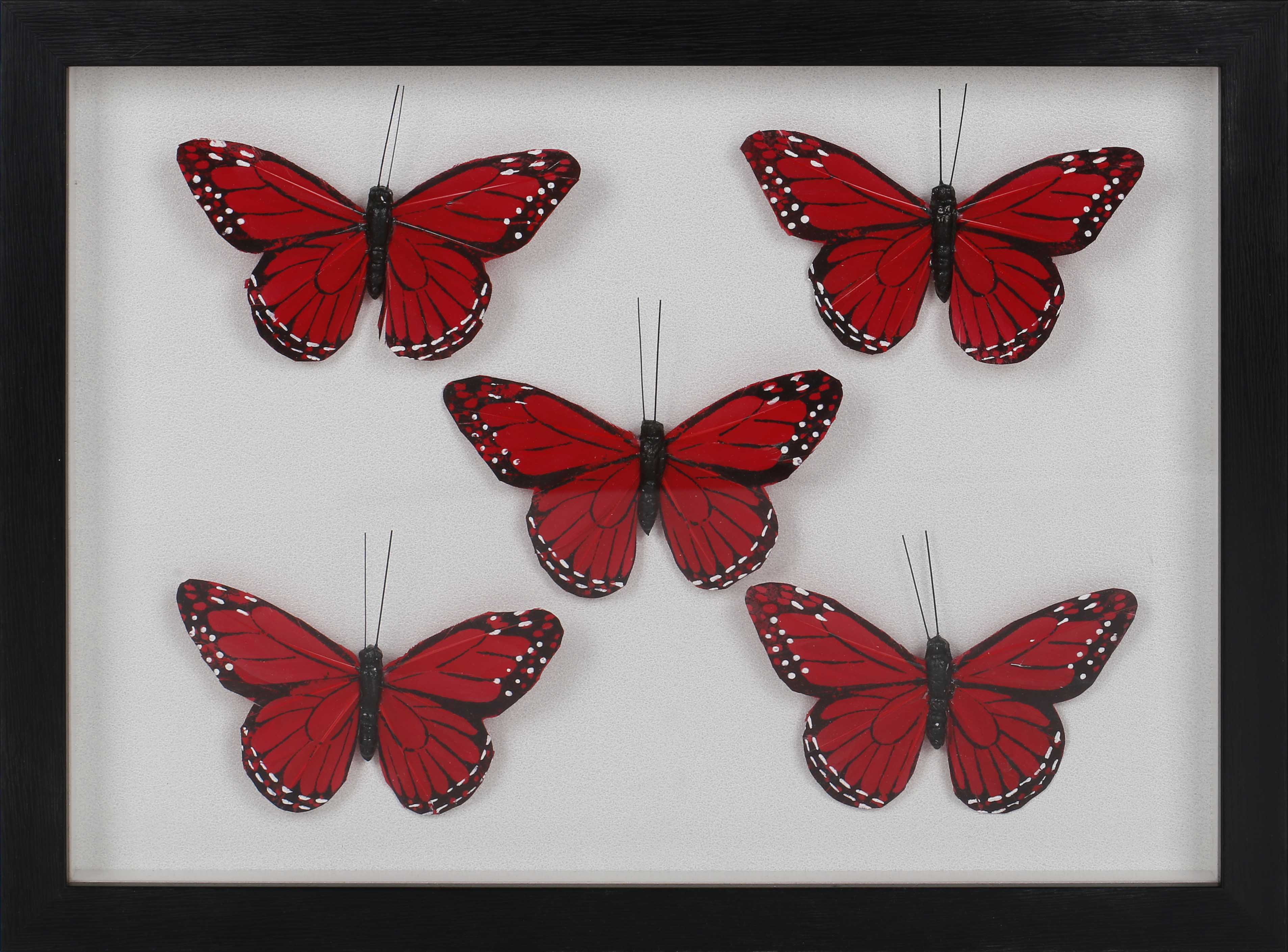 Product Craftsmanship:MDF backboard with a sandstone-effect base, 3D butterflies in the center, butterflies made of dyed feathers, Front acrylic glass panel